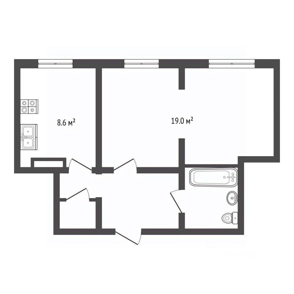 Общая площадь: 38,5 кв.м