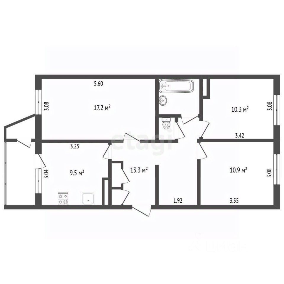 - Раздельные комнаты: каждая комната имеет свое предназначение, что позволяет создать зоны отдыха, работы и развлечений. - Просторная кухня: удобные рабочие и обеденные зоны предоставляют возможности для кулинарного творчества и семейных ужинов. - Санузел: раздельный, оборудован бытовой техникой и необходимым набором туалетных аксессуаров - Имеется отдельный рабочий кабинет, который можно использовать как гардеробную или кладовую В квартире остаётся вся мебель и техника, необходимые для комфортного проживания.