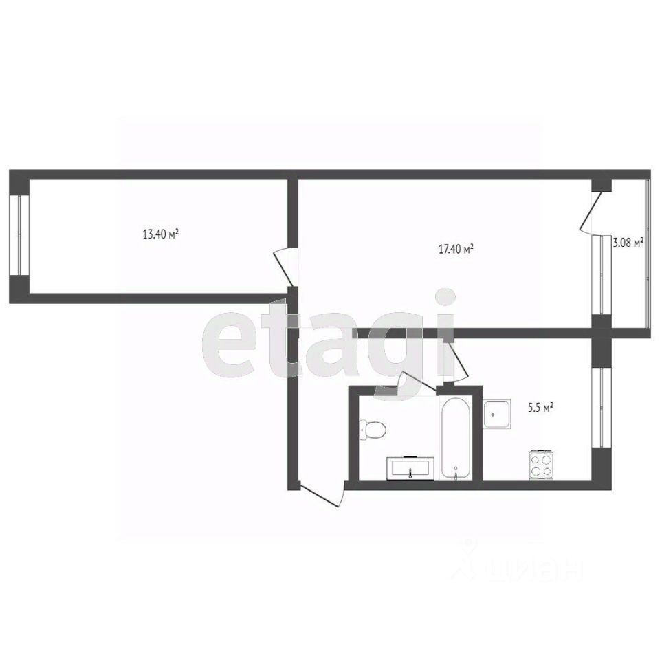 Вашему вниманию предлагается двухкомнатная квартира общей площадью 44,3 квадратных метра .