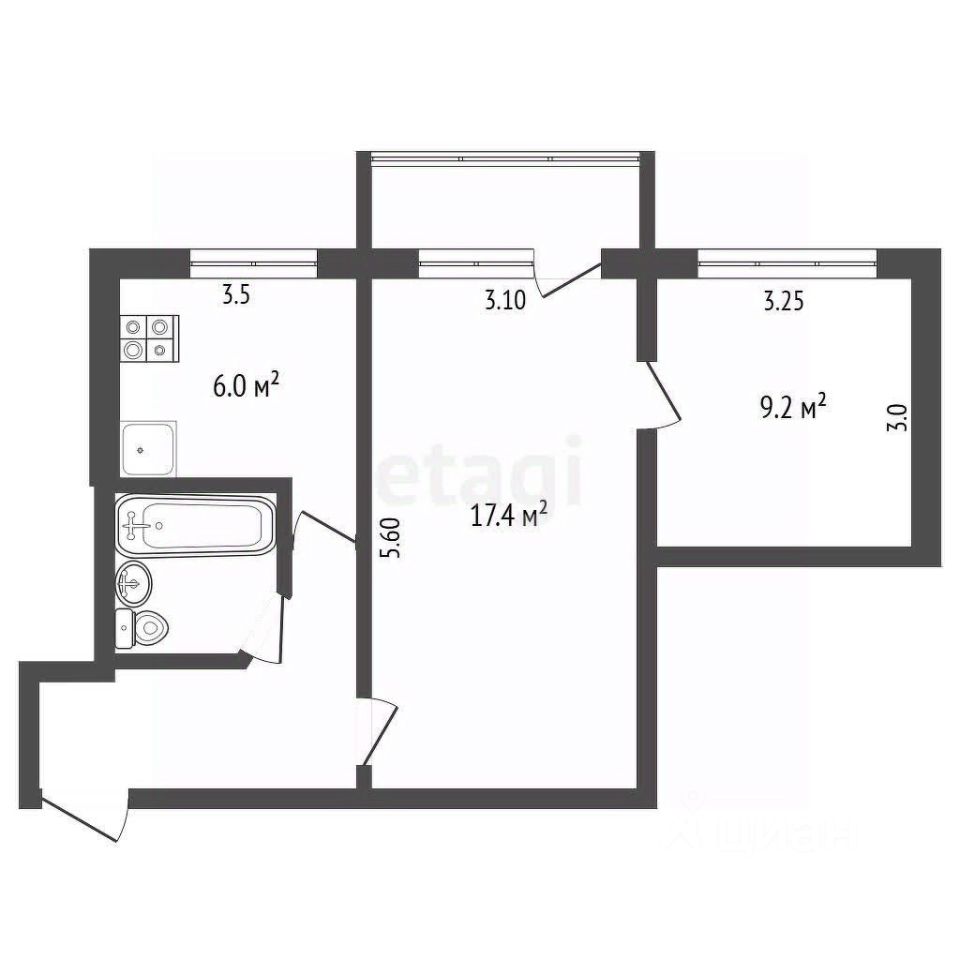 Площадь: 41,7 кв. м