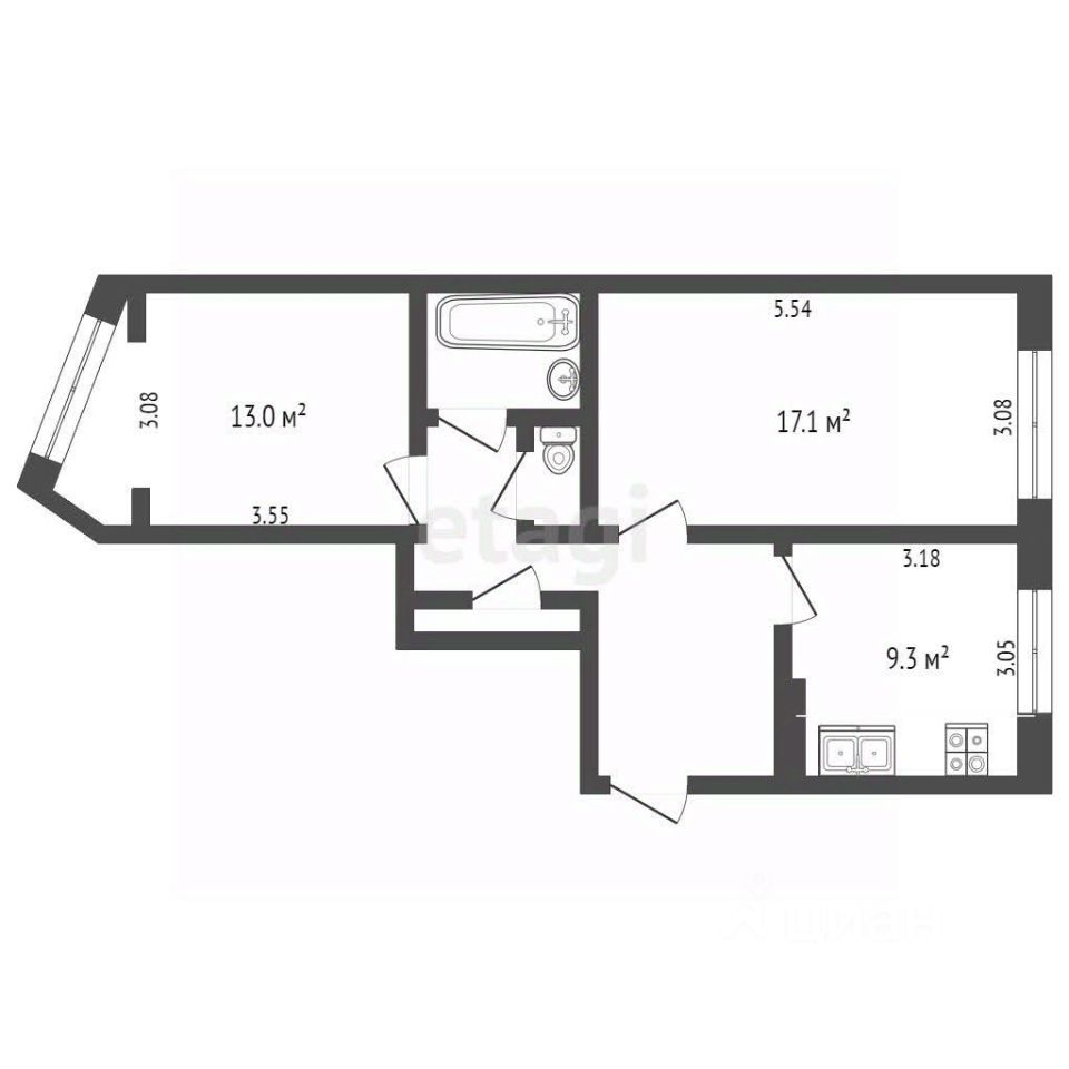 Предлагается к продаже отличная двухкомнатная квартира площадью 55 м кв в спальном районе города!