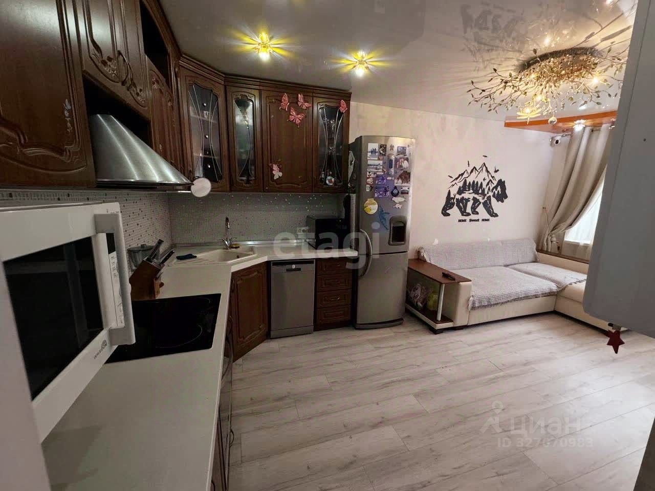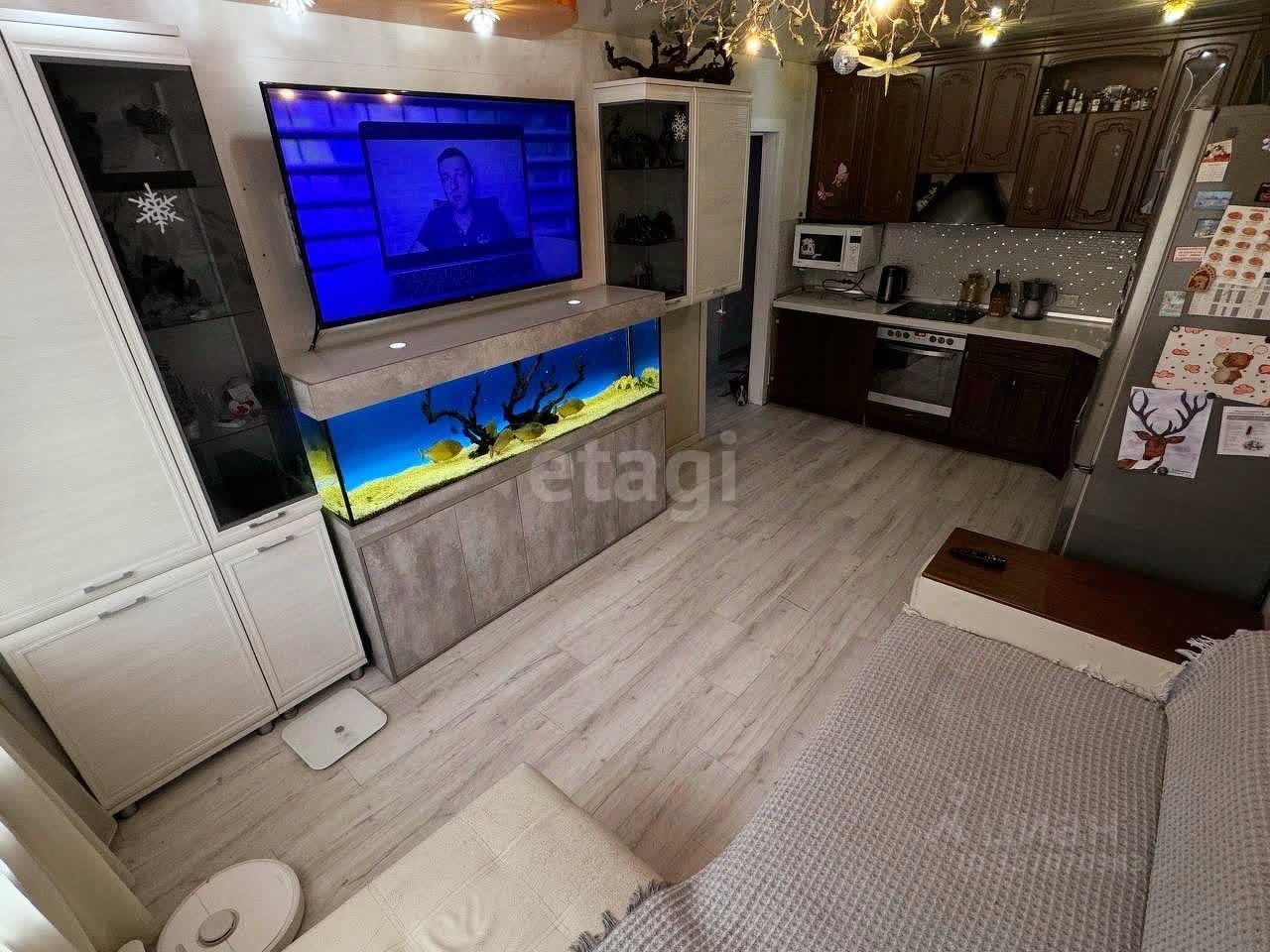 Просторная кухня-гостиная, две раздельные спальные комнаты. Большая прихожая. Косметический ремонт. В квартире остается вся необходимая мебель и бытовая техника (кроме аквариума, микроволновки и стиральной машины). Три камеры ''умный дом''. В спальной комнате кровать-трансформер (подъемный механизм).