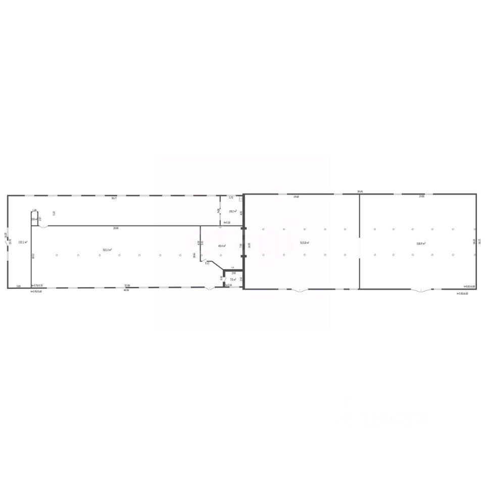 Основные характеристики: - Площадь здания: 1254 м² - Площадь участка: 3937 м² - Высота потолков: до 3,7 м - Тип здания: капитальное - Коммуникации: электричество, водоснабжение, септик (3 точки по 3 кольца) - Трое ворот в здание - Четыре помещения для отдыха персонала.